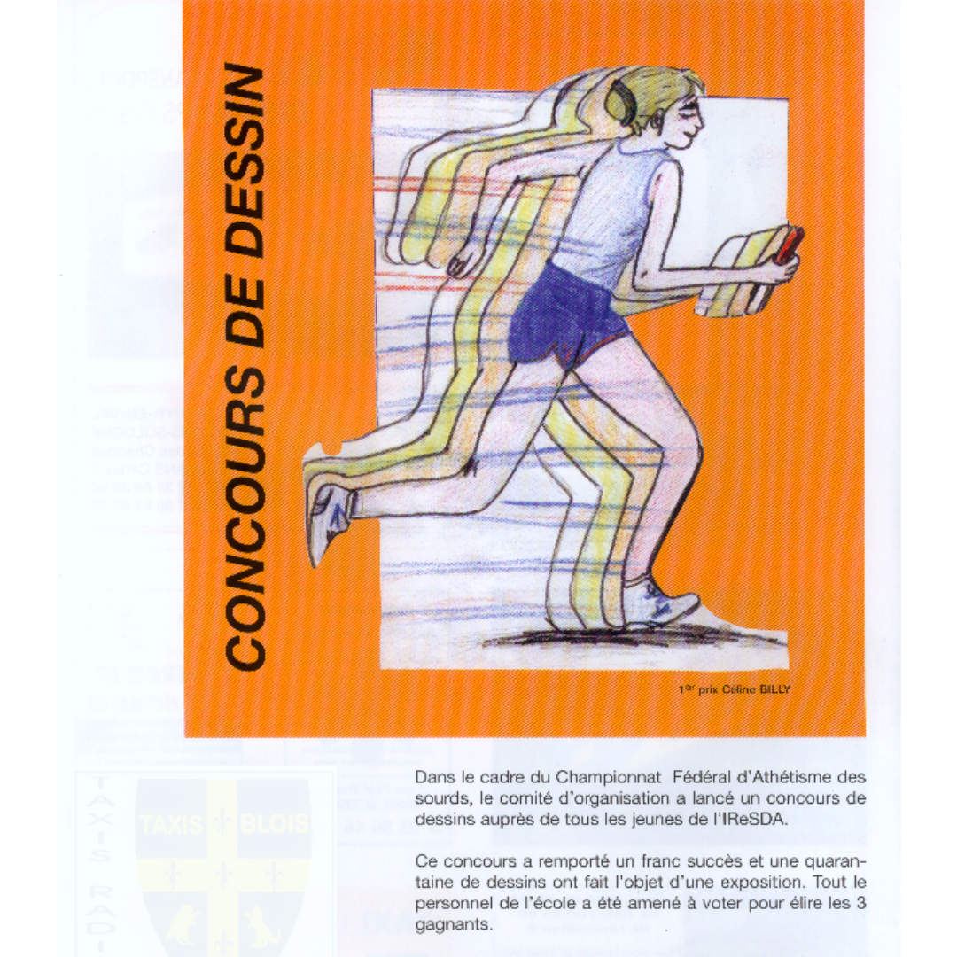 En été 2001, j'ai participé à un concours de dessins à Orléans, dans le cadre du Championnat Fédéral d'Athlétisme des sourds. Mon dessin a remporté le 1er prix. J'ai reçu de beaux cadeaux en récompense, et je suis très reconnaissante. C'était un moment inoubliable et encourageant.