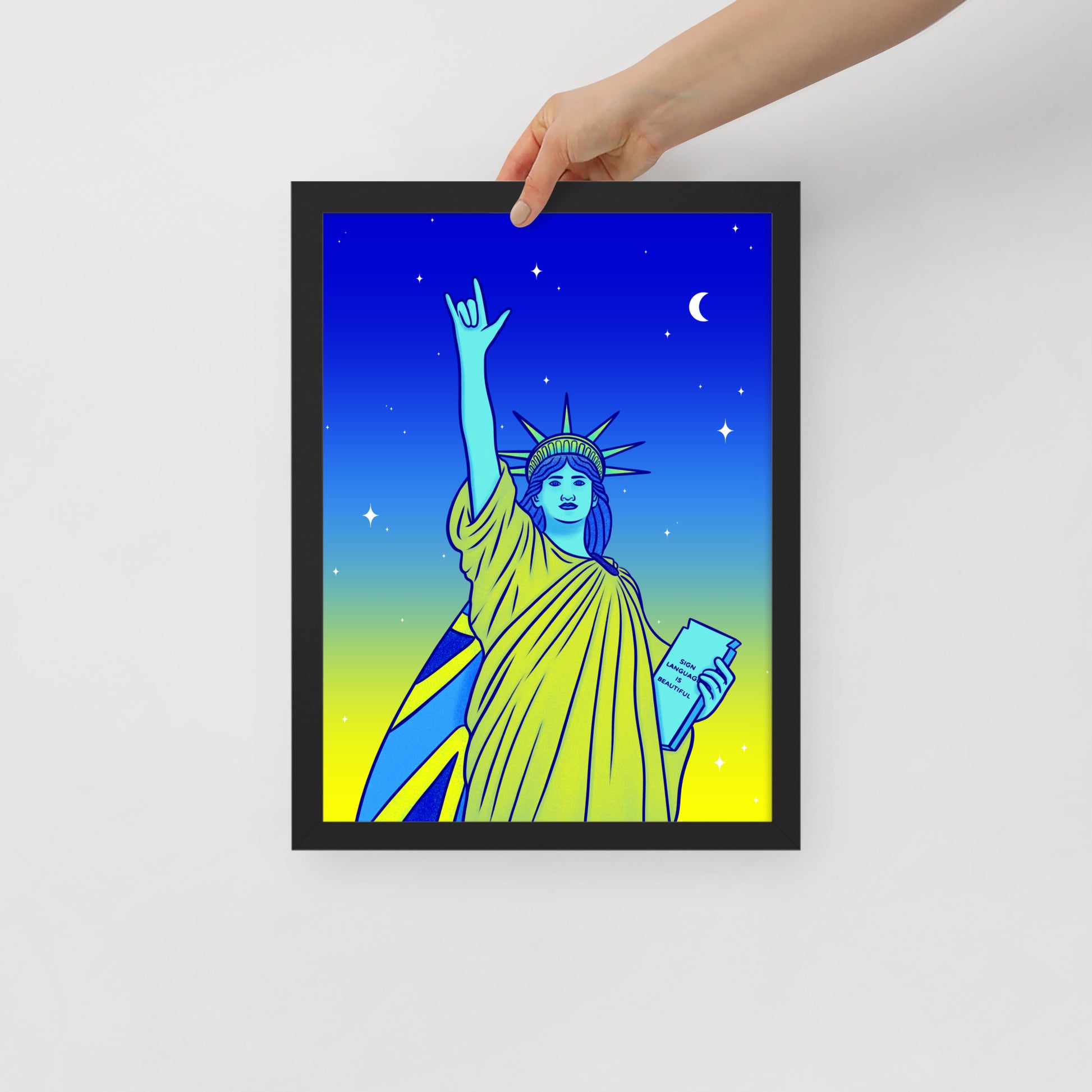 Poster en Papier Mat Encadré - Statue de la Liberté : Je t'aime en Langue des Signes