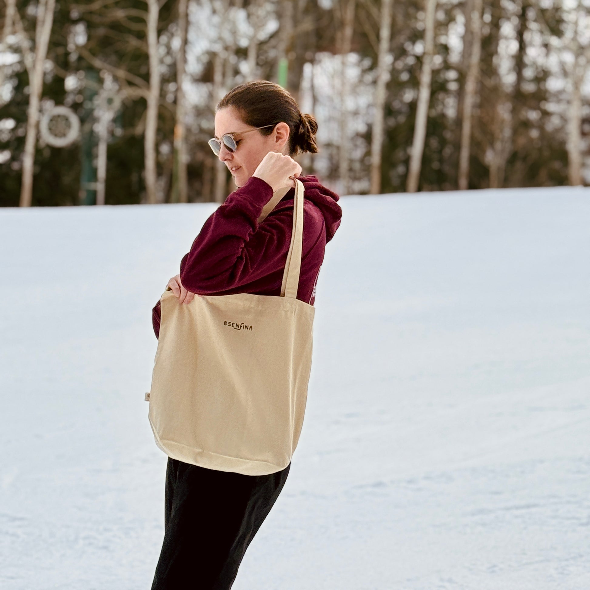 Dites au revoir au plastique, et emballez vos affaires dans ce sac fourre-tout en coton biologique. Il y a plus qu'assez de place pour les courses, les livres et le reste.